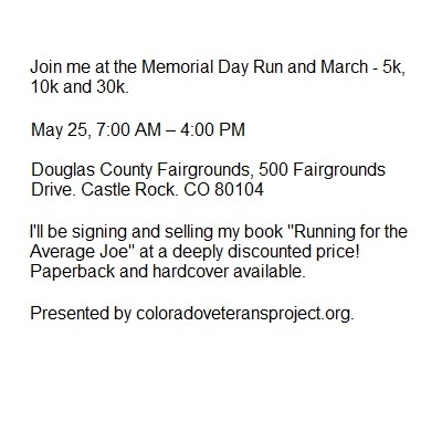Visit booth #29, wattsrunning.com for special event pricing on “Running for the Average Joe.” I’ll have copies of the paperback and the gorgeous new hardcover book at highly discounted prices.